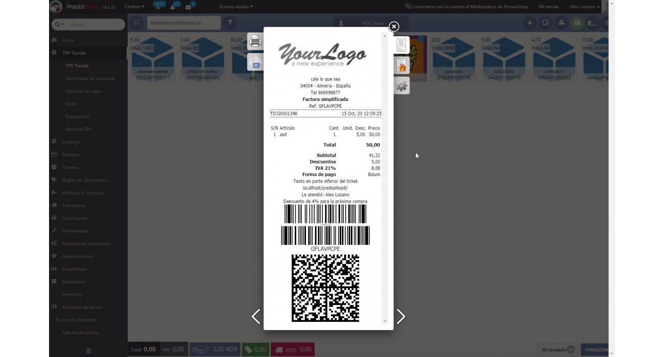 Este módulo habilita la forma de pago Bizum y tarjeta. El pedido queda en estado "enlace de pago" e incluye en el ticket un código QR para que el cliente lo lea y haga el pago desde su móvil, al hacer el pago cambia el estado al que se le indique en la configuración
