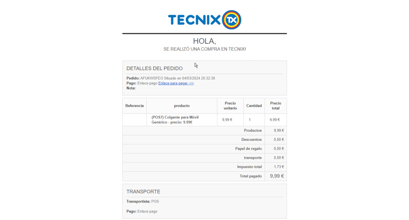 Cuando se acepta el pago, el pedido cambia de estado al que se haya configurado previamente, en el ejemplo a "pago aceptado"