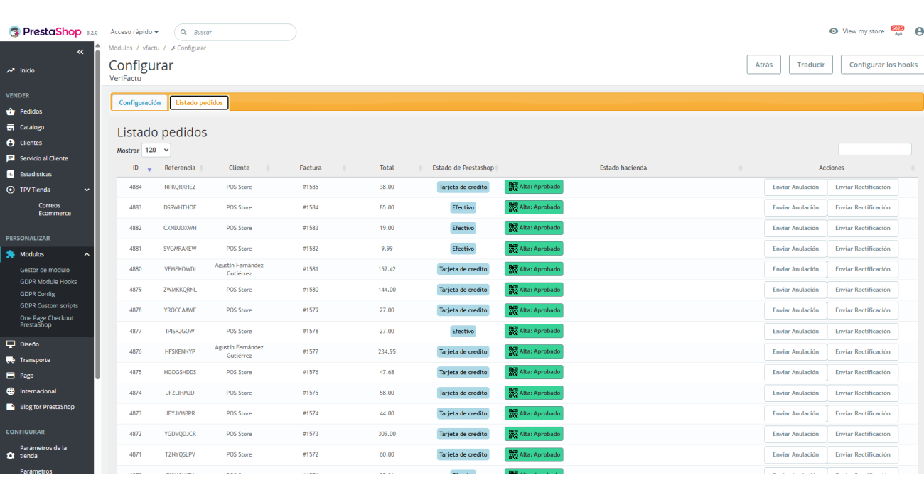 El módulo de Verifactu permite hacer anulaciones y tambien anula automáticamente al crear una recitifativa o abono.